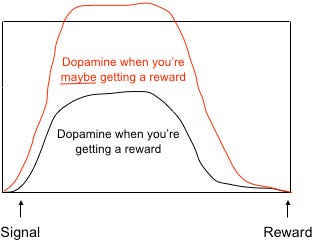 This is Intermittent reinforcement, where in TikTok giving dopamine surge at irregular intervals manipulates the users to get stuck into wanting more. Look at this simple graph below and it’ll be more clear to you: