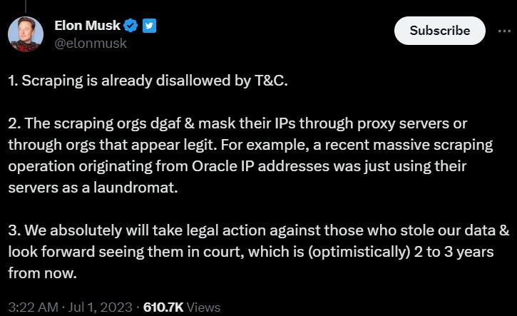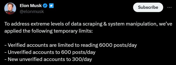 “That’s just outrageous?! Why should we be limited to the number of tweets we see per day? Won’t that be counter-intuitive for any company to hard limit a product usage? Does Elon Musk surely know how to run Twitter?”